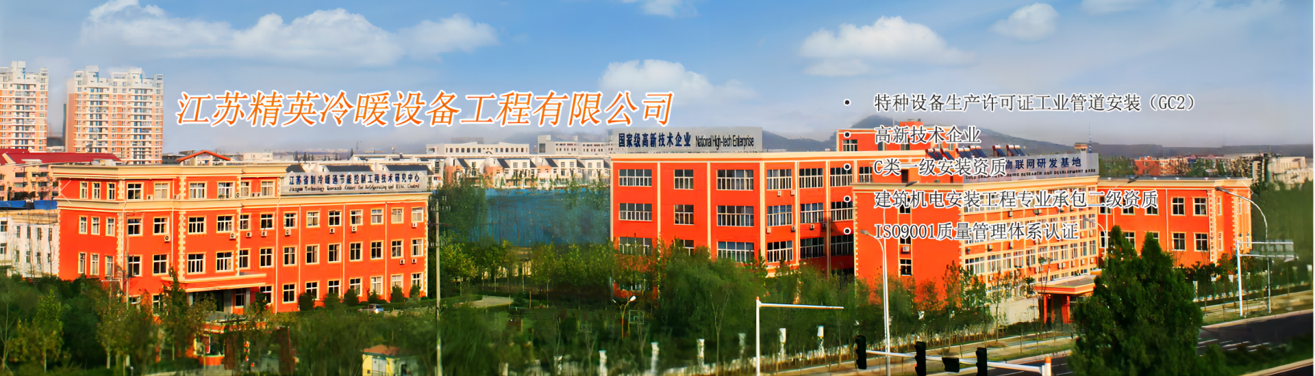 江蘇精英冷暖設(shè)備工程有限公司位于江蘇省徐州高新技術(shù)產(chǎn)業(yè)開發(fā)區(qū)第二工業(yè)園昆侖路14-2號,為高新技術(shù)企業(yè),公司擁有ISO9001質(zhì)量管理體系認證、ISO14001環(huán)境管理體系認證、ISO45001職業(yè)健康安全管理體系認證、工業(yè)管道安裝(特種設(shè)備安裝、修理、改造)GC2資質(zhì)、建筑機電安裝工程專業(yè)承包貳級資質(zhì)、安全生產(chǎn)許可證、C類I級安裝資質(zhì)、農(nóng)機補貼定點企業(yè)及制冷設(shè)備國家標準《GB/T18430.2-2008》、《藥品冷鏈物流運作規(guī)范》、《冷鏈物流分類與基本要求》的起草單位等資質(zhì)。